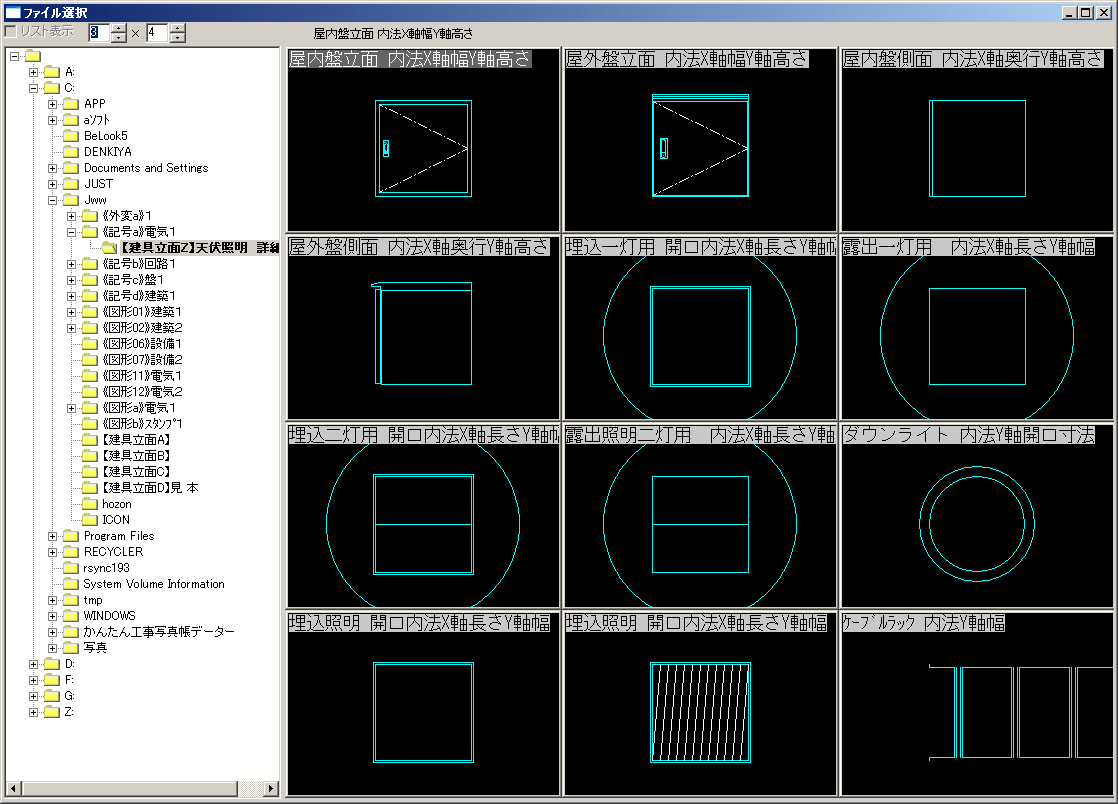 その他のスクリーンショット ダウンロード ページへ 電灯盤、動力盤等の平面シンボル ダウンロード ページへ 盤正面の姿(屋内盤、屋外盤)やケーブルラック、照明シンボル ダウンロード ページへ 電気設備用 定型文字列データー ダウンロード ページへ
